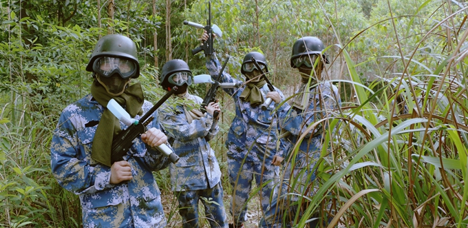 規(guī)則講解完畢,兩隊人馬荷槍實彈,浩浩蕩蕩“殺”向山叢中的戰(zhàn)場上。