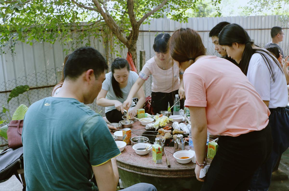 經(jīng)歷過CS野戰(zhàn)后,我們一行人已經(jīng)餓得前胸貼后背了。下山后,大家稍作休整,開始野營燒烤,滾紅的炭火燒起來,各種肉類在燒烤網(wǎng)上冒出熱氣和濃濃的肉香,不一會兒,大家便開始大快朵頤的將食材一掃而空。