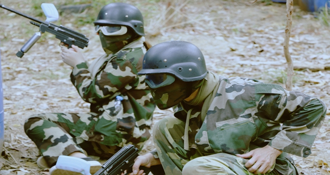 由于戰(zhàn)地環(huán)境惡劣,隊員們有的以大樹為掩護,有的直接趴在草叢中紋絲不同,坐等“敵人”撞上槍口,大家有自己的分工,又相互協(xié)作。突然,一聲脆想,身邊的一位戰(zhàn)友不幸“中彈”,旁邊的隊友立刻補充過來。對于體質(zhì)較弱的女戰(zhàn)友,在男隊友的火力掩護下,統(tǒng)一躲到掩體中隱避起來,給男隊友補充“彈藥”。兩隊人馬實力相當,激烈的槍戰(zhàn)之后,雙方都有一定人員“傷亡”,一時難分勝負,半小時后,終因其中一隊隊員彈藥用盡,戰(zhàn)斗才停止,最終,以6:5的傷員人數(shù),惜敗。
