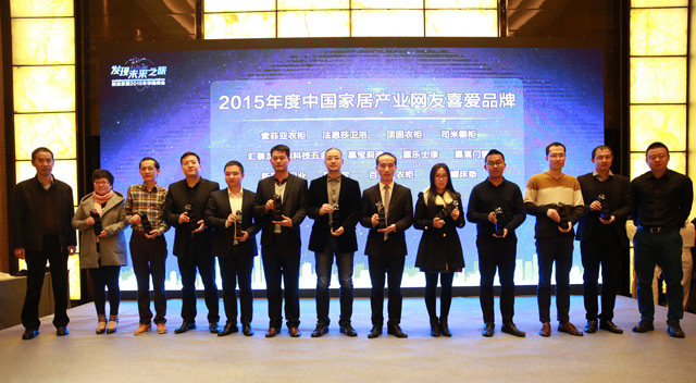 徐振忠先生(左五)代表匯泰龍公司接受“2015年度中國(guó)家居產(chǎn)業(yè)網(wǎng)友喜愛(ài)品牌”榮譽(yù)