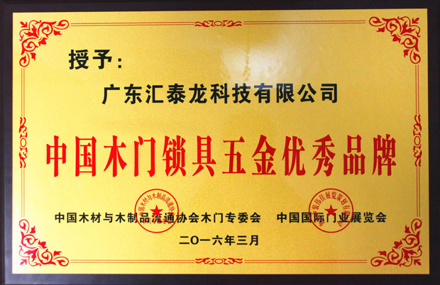 在本次中國國際門業(yè)展覽會十星級企業(yè)頒獎活動中,匯泰龍被中國國際門業(yè)展覽會中國木材與木制品流通協(xié)會木門專委會授予“中國木門鎖具五金優(yōu)秀品牌”。
