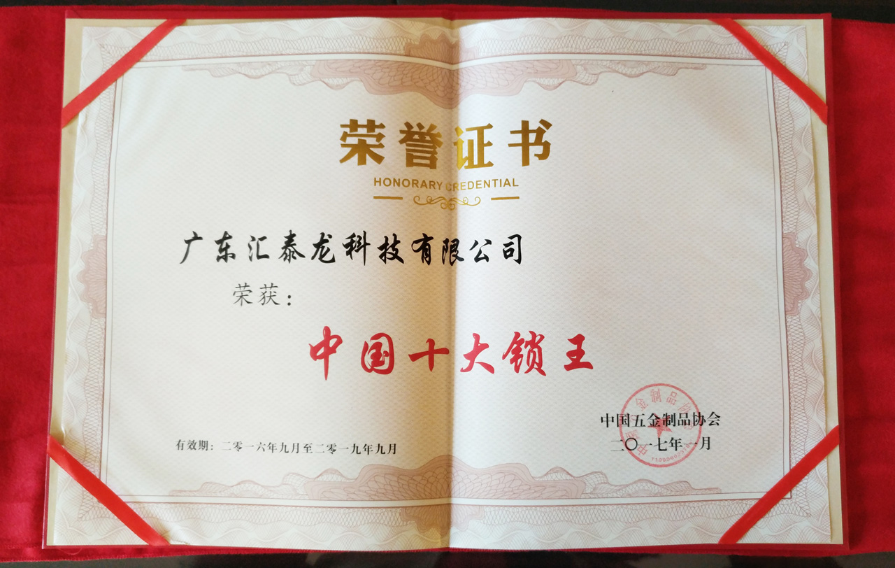 匯泰龍榮獲“中國十大鎖王”