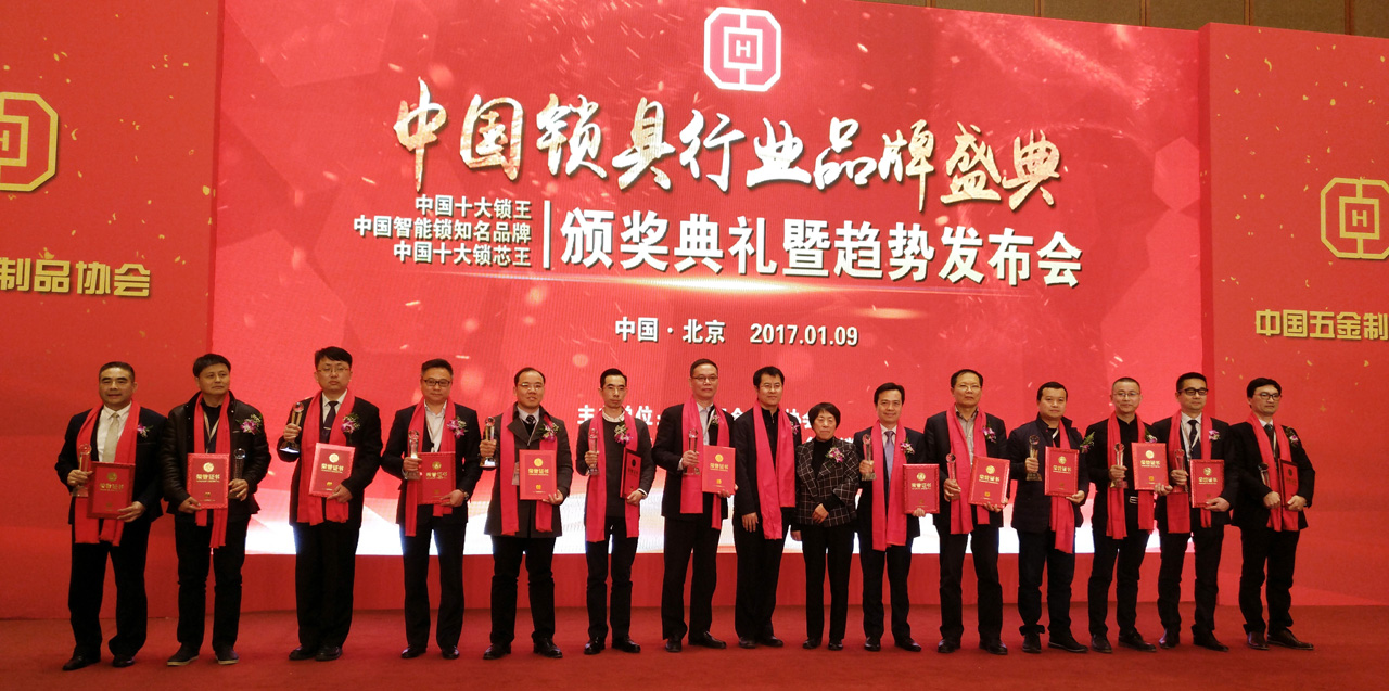 2017年1月9日,中國鎖具行業(yè)品牌盛典頒獎典禮暨趨勢發(fā)布會在北京釣魚臺國賓館舉行。本次活動由由中國五金制品協(xié)會主辦,中國五金制品協(xié)會制鎖分會協(xié)辦。