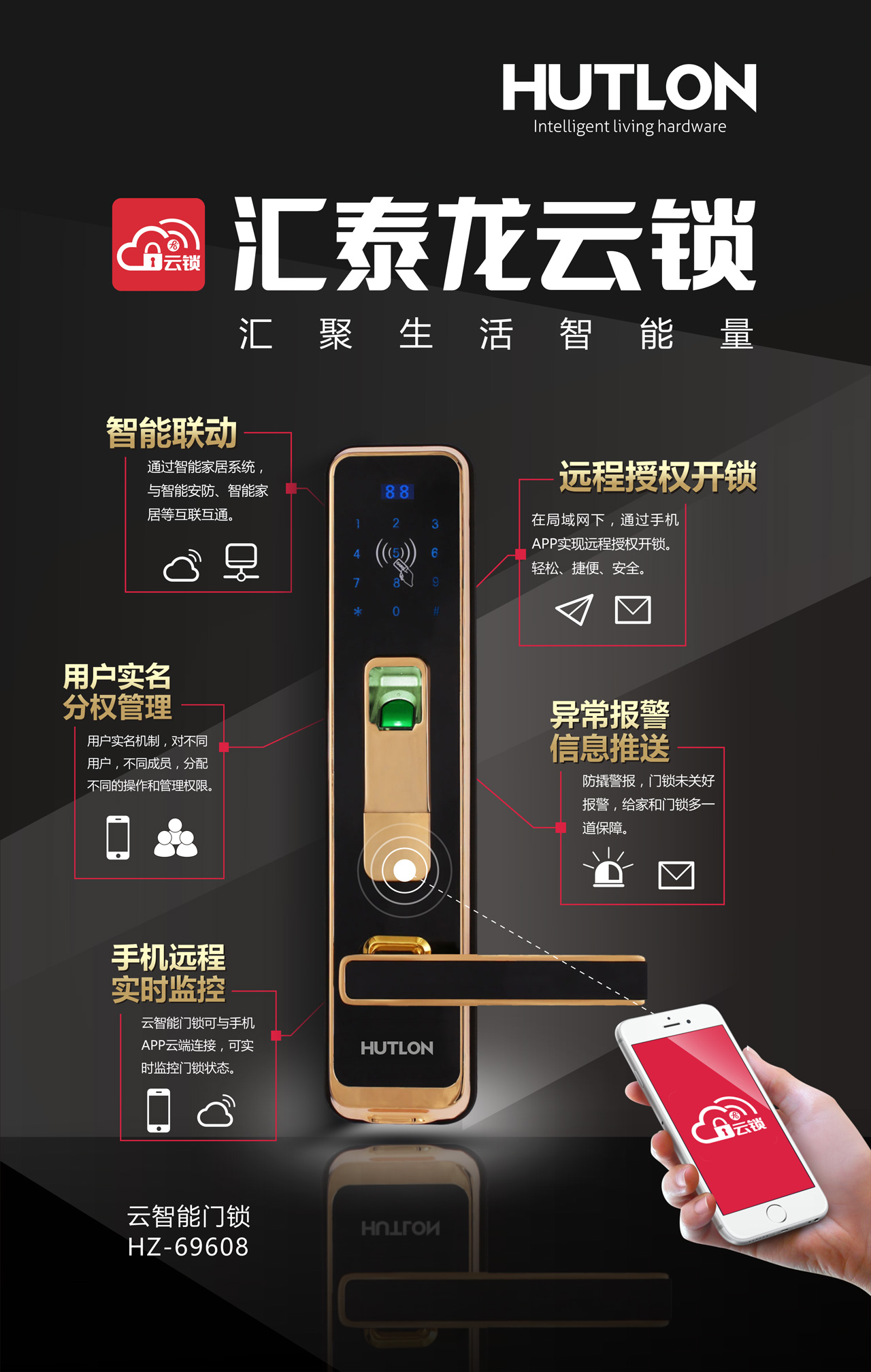 匯泰龍云鎖為家?guī)砹擞H情關(guān)懷,小孩、老人回家,通過手機就能第一時間了解收到開門信息推送提示。