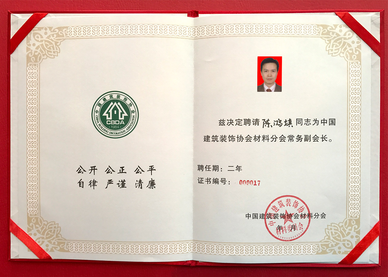 匯泰龍董事長陳鴻填先生榮膺「中國建筑裝飾協(xié)會材料分會常委副會長」