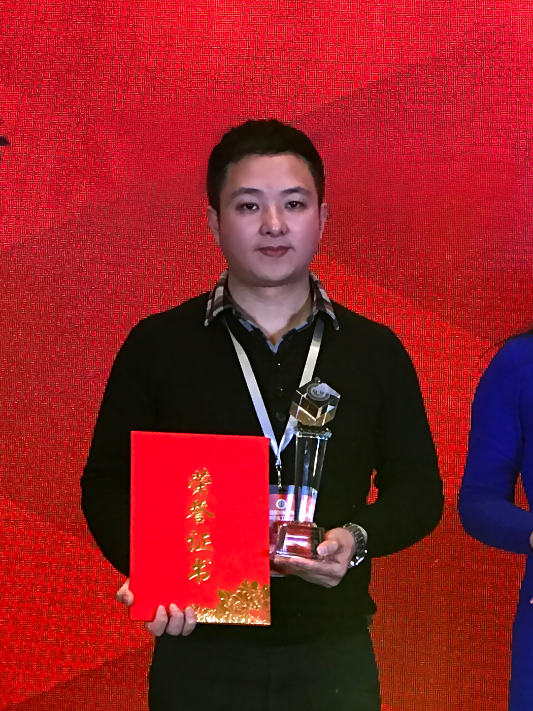 匯泰龍總經(jīng)理徐振忠先生上臺接受「中國建筑裝飾協(xié)會材料分會優(yōu)秀會員」榮譽(yù)