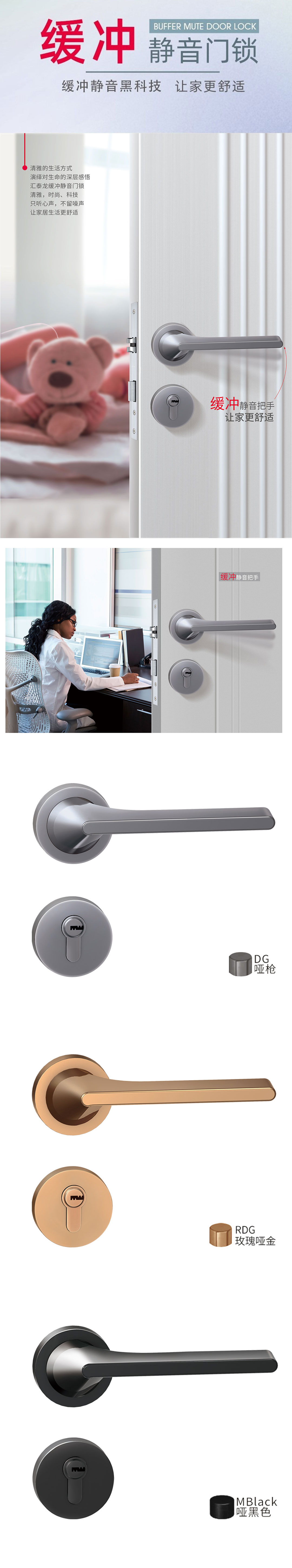內(nèi)置阻尼器設(shè)計,開關(guān)門下壓把手的聲音遠(yuǎn)小于普通門鎖