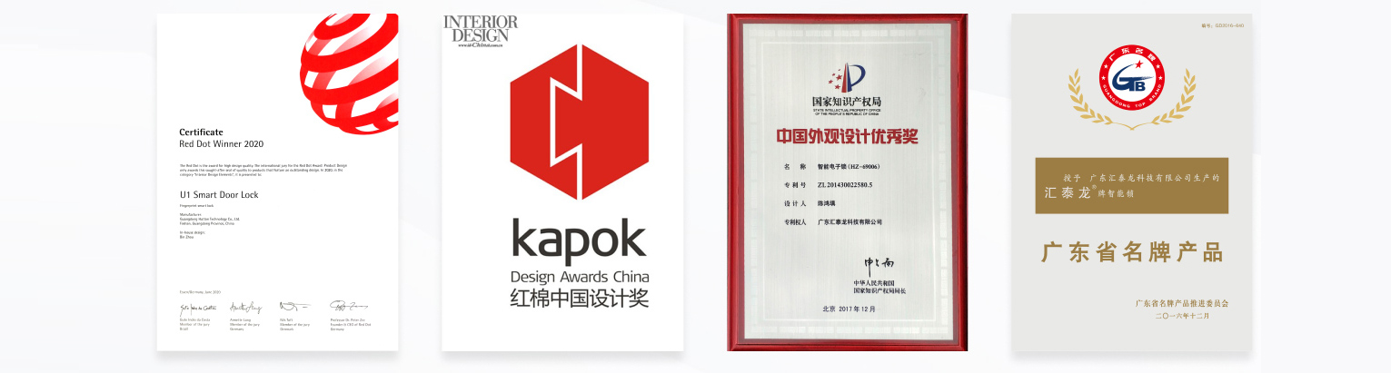 ”廣東省名牌產(chǎn)品“ ”十大智能鎖品牌“、”十大優(yōu)選家居五金品牌“