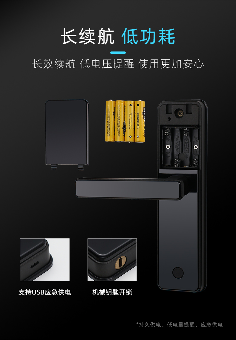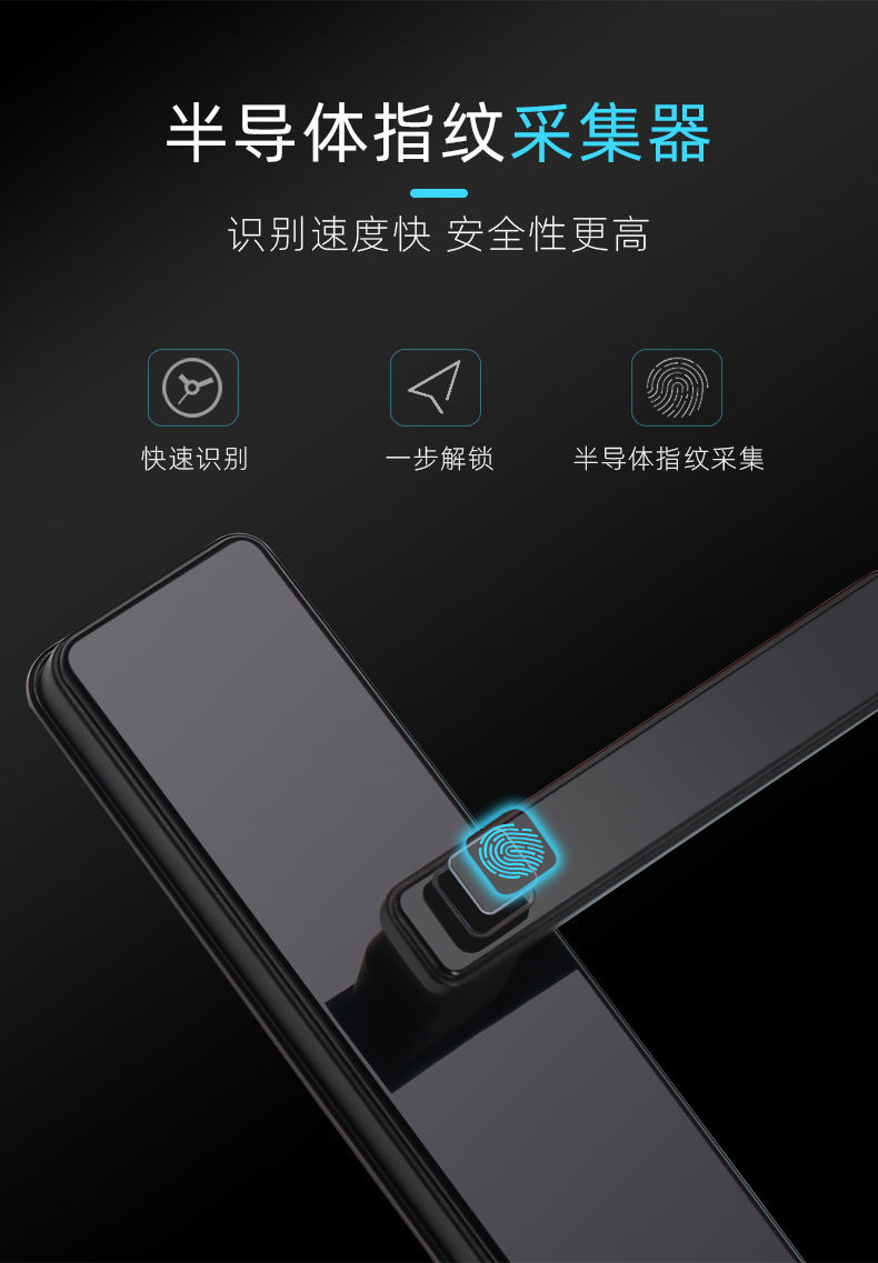 1. 把手指紋設(shè)計(jì),采用瑞典FPC生物識(shí)別傳感器,一體化帶燈光提示指紋讀頭設(shè)計(jì),極速識(shí)別開鎖快人一步;