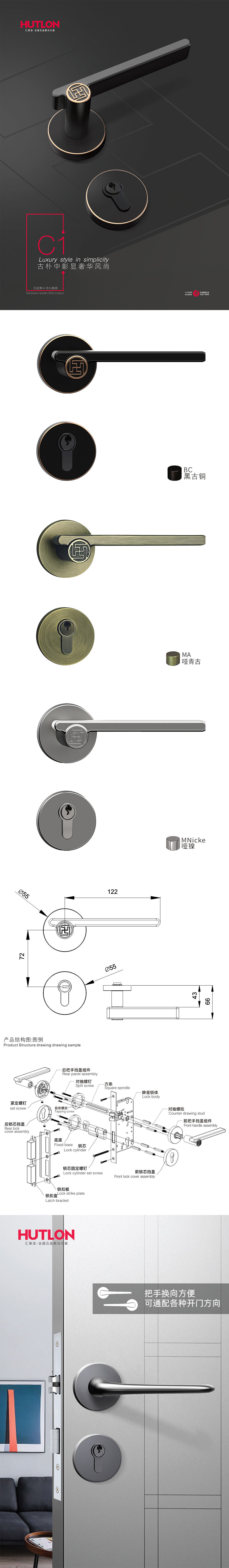 4安裝內(nèi)外面板,使把手轉(zhuǎn)動順:擰緊螺釘(如上圖:E-F)。