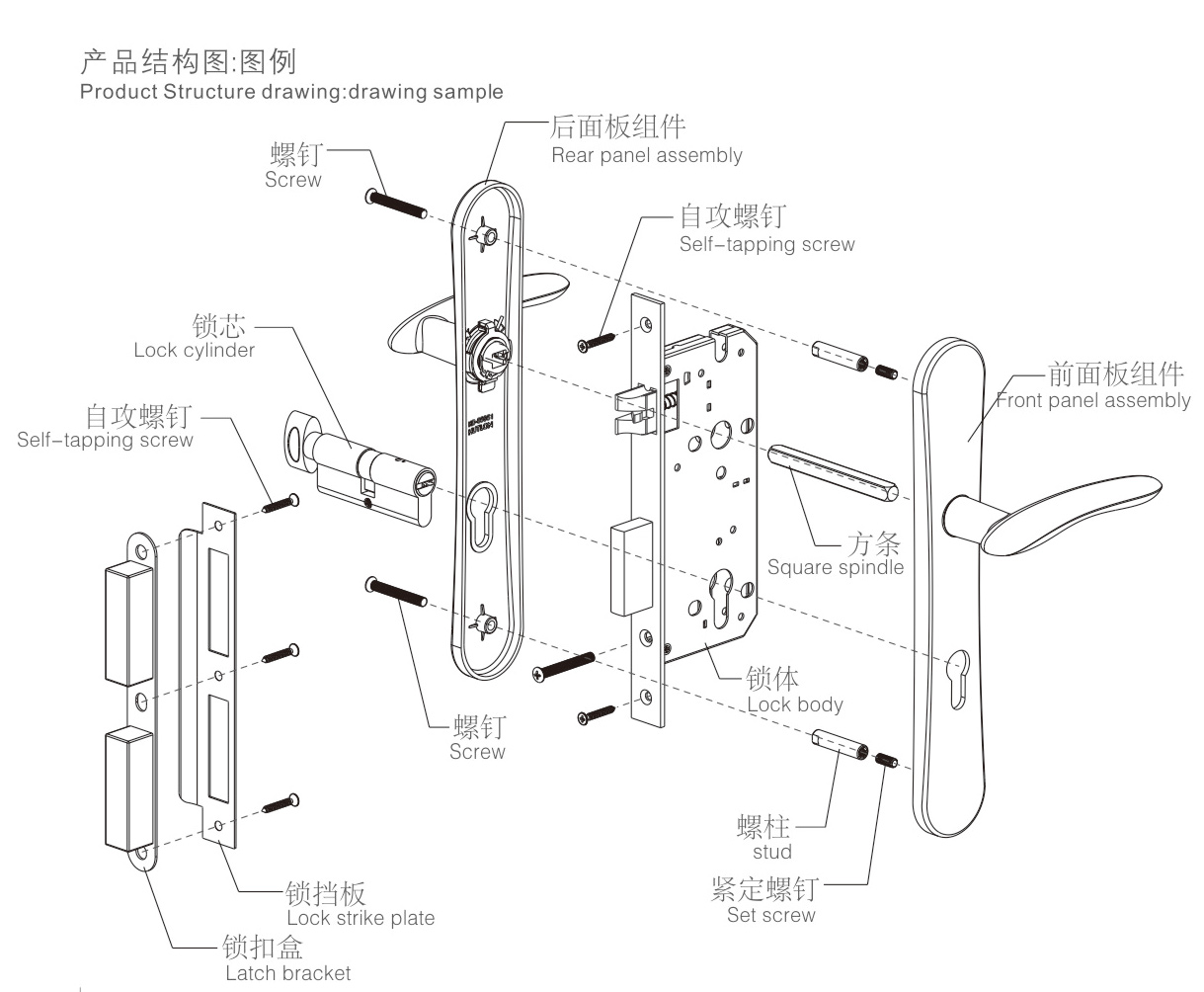 4安裝內(nèi)外面板,使把手轉(zhuǎn)動(dòng)順:擰緊螺釘(如上圖:E-F)。