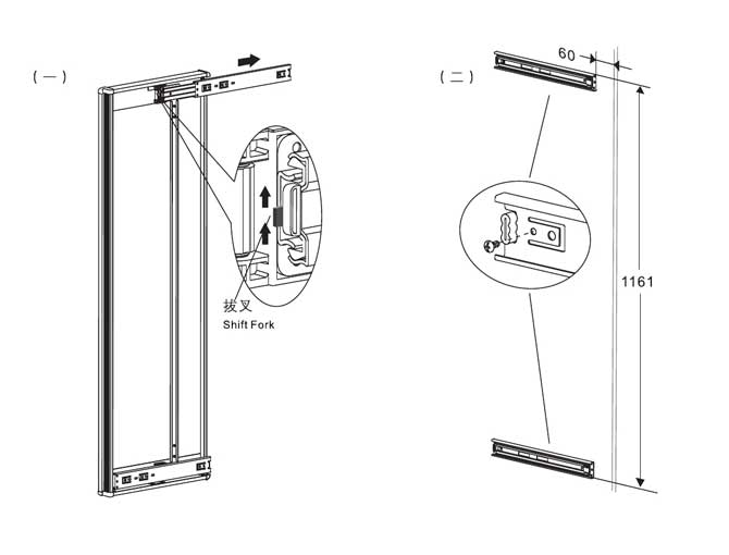 2、將內軌安裝在衣柜上,擰緊螺絲固定。