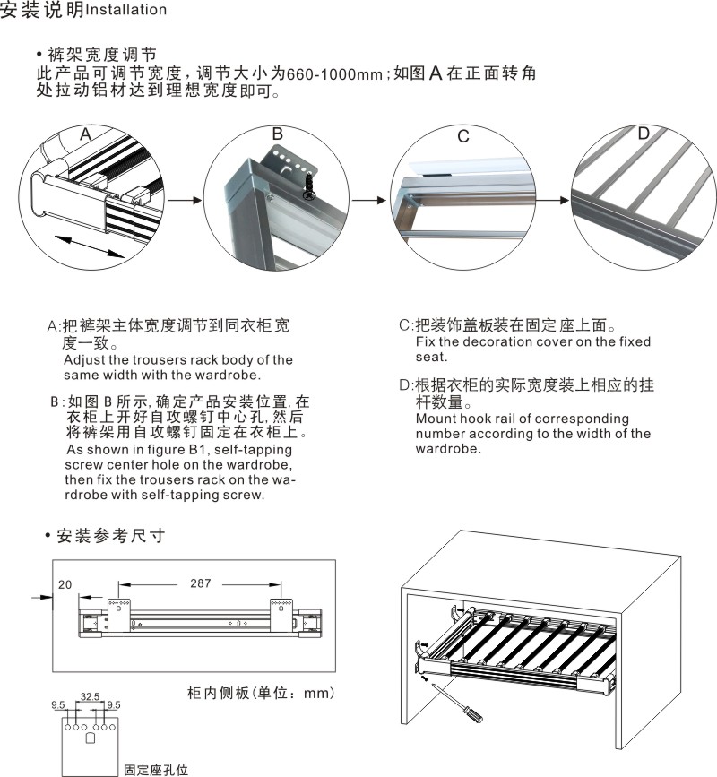 適用衣柜深度:495mm