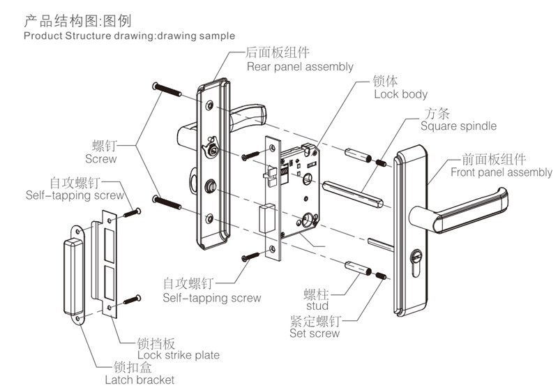 6擰緊螺釘,安裝扣板及扣盒,對(duì)齊鎖體,應(yīng)使鎖舌與之配合順暢,擰緊螺釘(如上圖:H)。