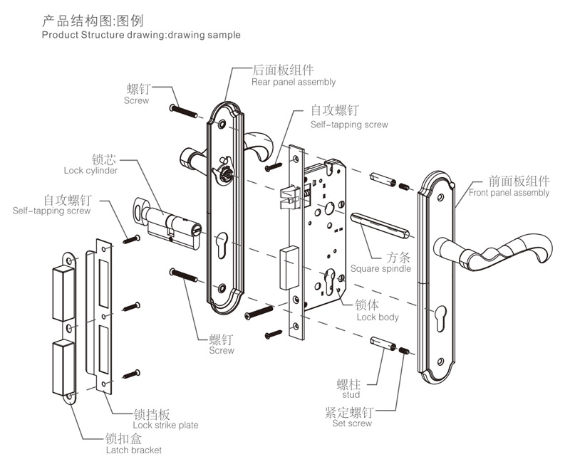 4安裝內(nèi)外面板,使把手轉(zhuǎn)動順:擰緊螺釘(如上圖:E-F)。