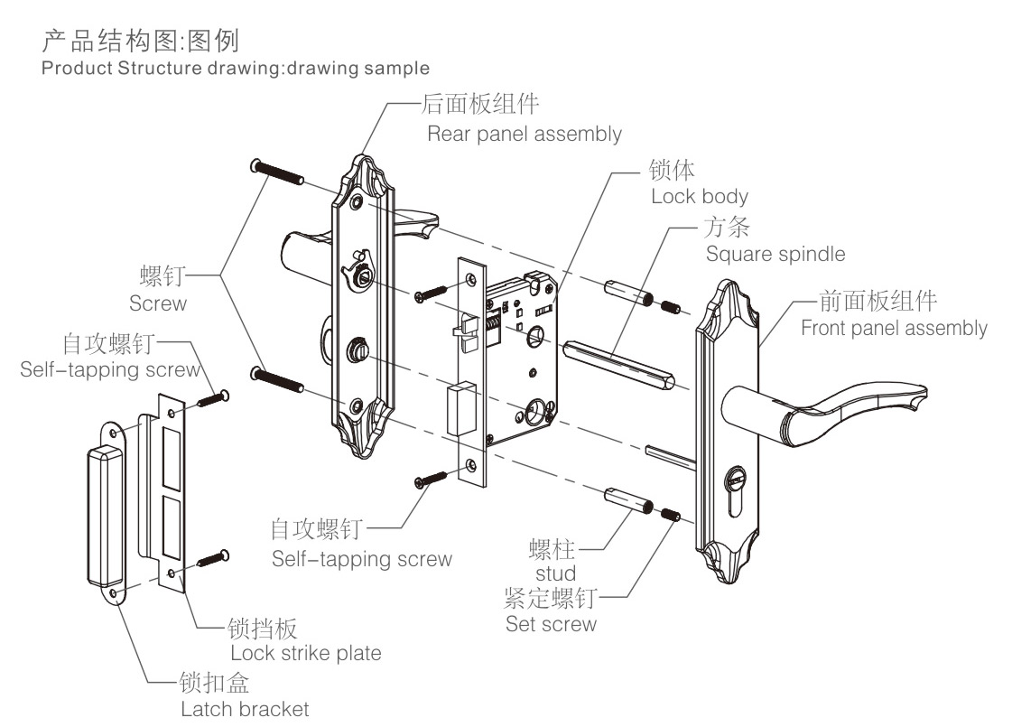 4安裝內(nèi)外面板,使把手轉(zhuǎn)動(dòng)順:擰緊螺釘(如上圖:E-F)。