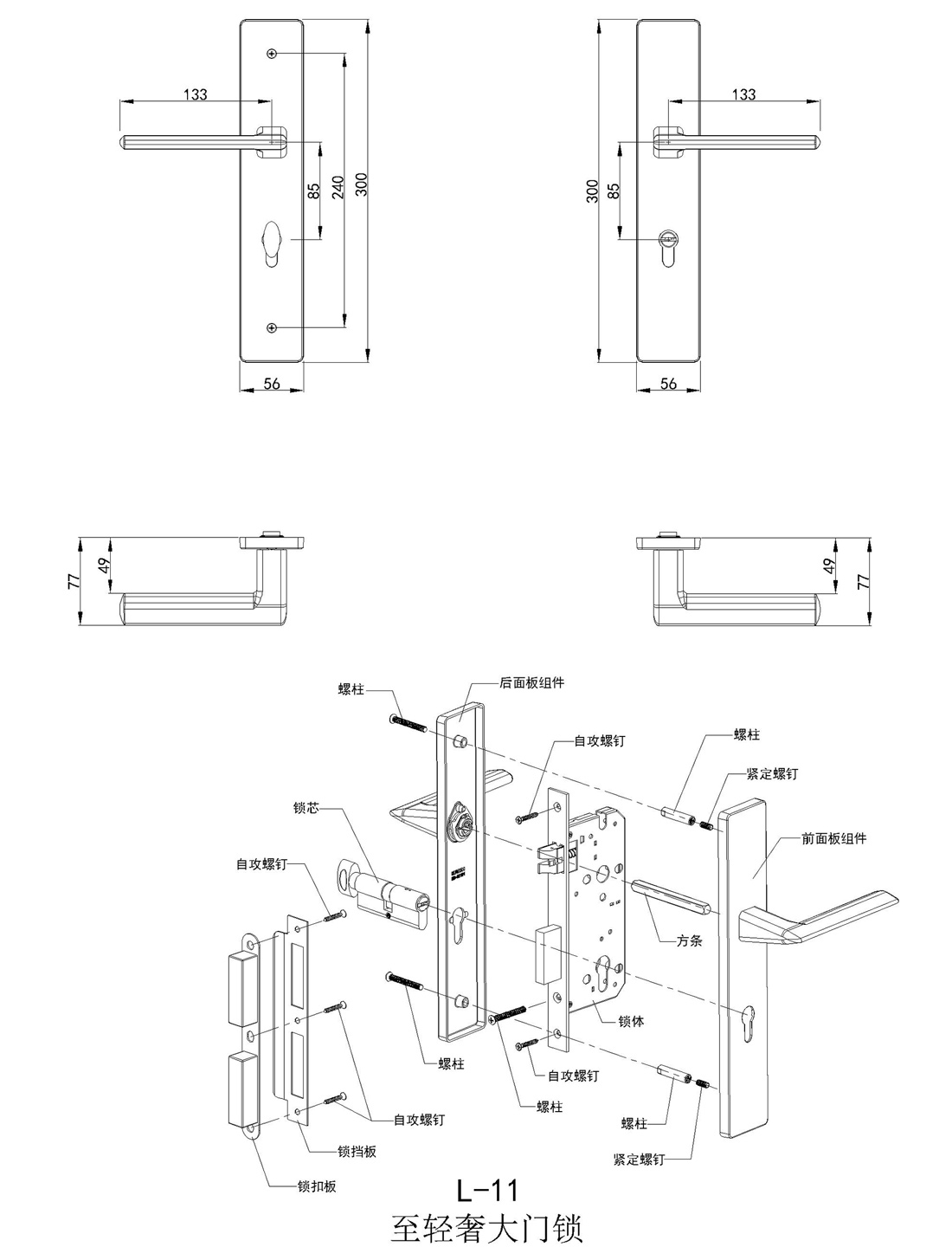 1. 大門鎖采用H59銅制造,具有外觀精美、時尚的造型,生產(chǎn)工藝精細,把手觸摸手感佳。