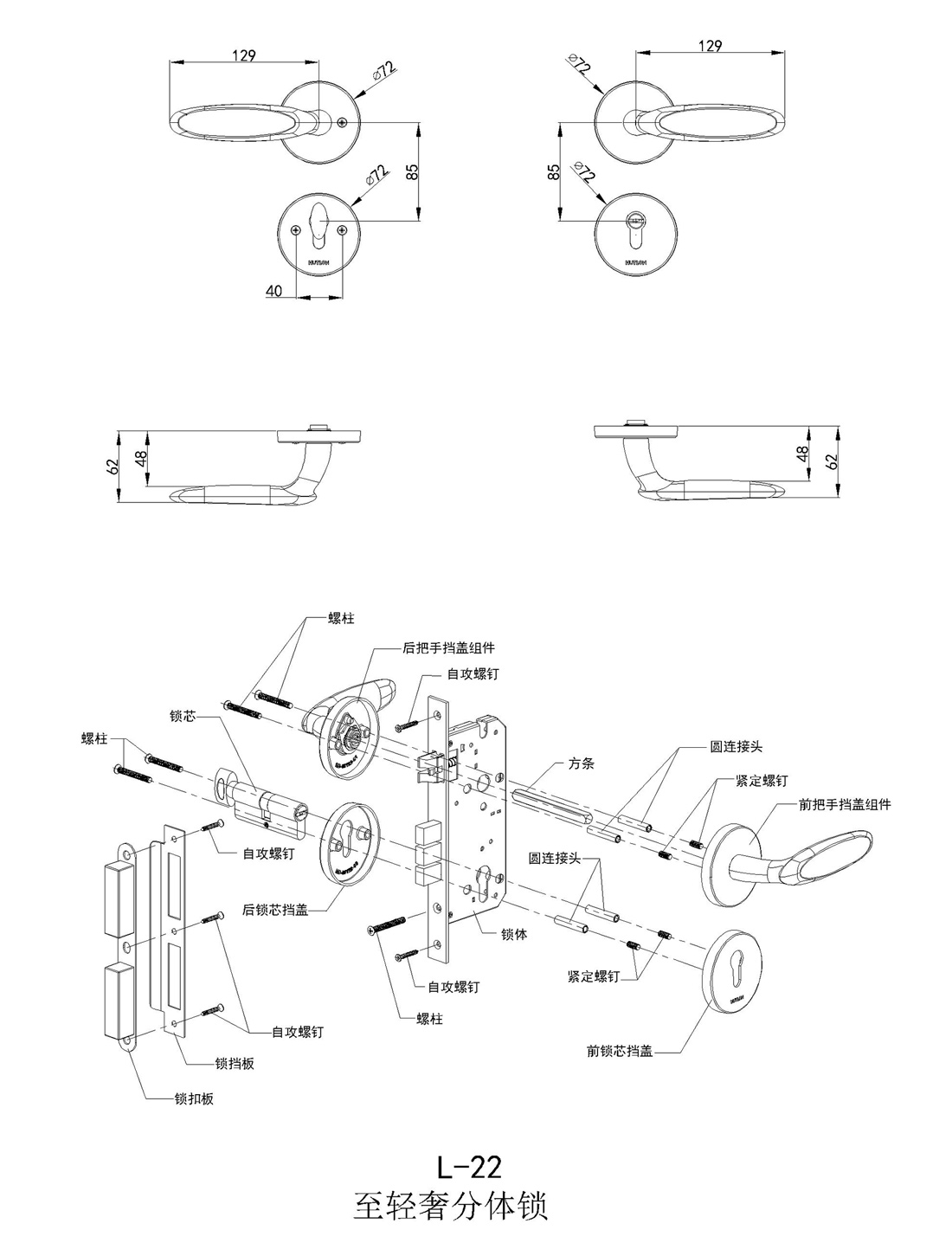 1. 大門鎖采用H59銅制造,具有外觀精美、時(shí)尚的造型,生產(chǎn)工藝精細(xì),把手觸摸手感佳。