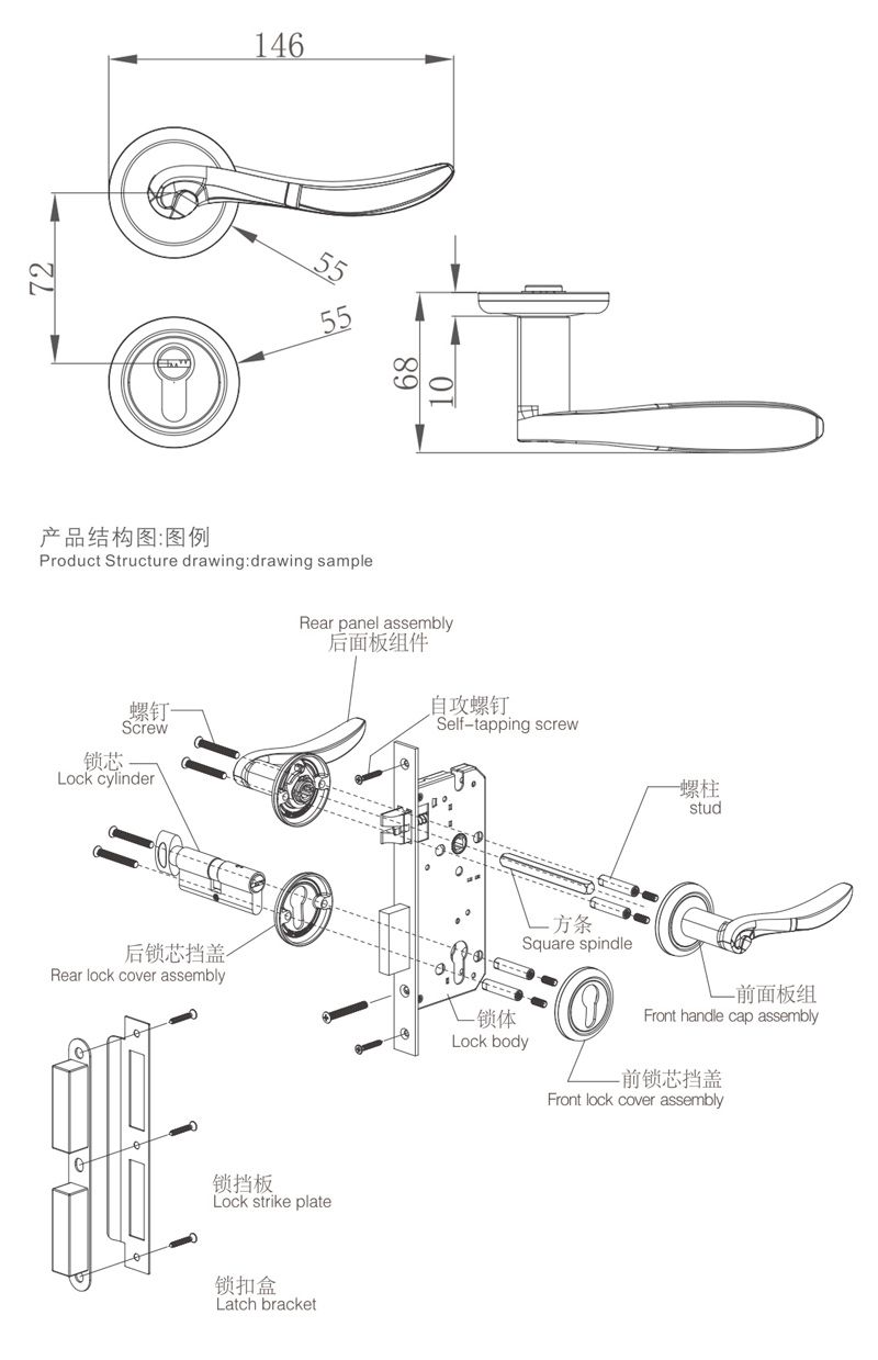 鎖體:HD-72-55H緩沖靜音鎖體